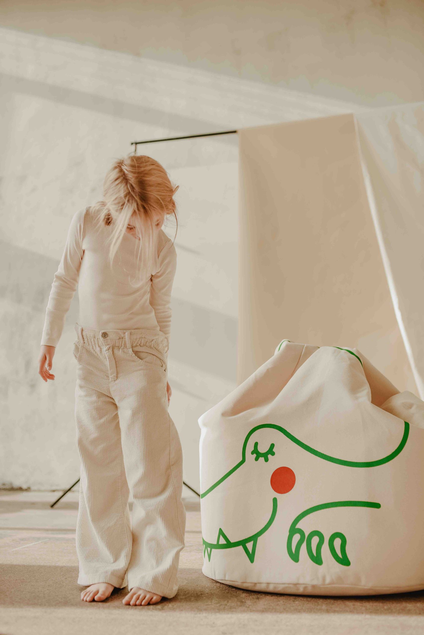 Nasza flagowa bawełniana pufa. Lekka jak piórko, by dzieci mogły ją przenosić, i na tyle stabilna, że dorośli z przyjemnością zanurzą się w niej po długim, męczącym dniu. Uszyta z miękkiej, lokalnie pozyskiwanej bawełny. Czy to podczas zabawy, w wolnej chwili dla siebie, czy podczas rodzinnego relaksu – ta pufa idealnie odnajdzie się w każdej sytuacji.